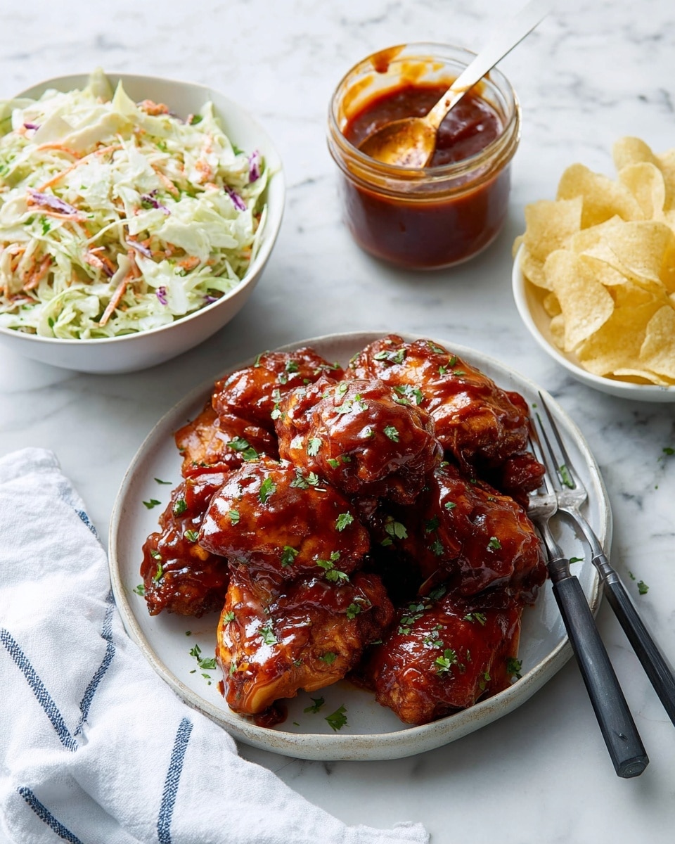 I love how these ingredients come together effortlessly to bring smoky, garlicky flavor to tender chicken thighs. Keep an eye out for good quality boneless, skinless thighs since they cook evenly and soak up all that BBQ goodness wonderfully.