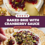 This delicious Baked Brie with Cranberry Sauce is a simple yet elegant holiday appetizer featuring a warm, creamy brie cheese round topped with a sweet and tangy spiced cranberry sauce, chopped nuts, and fresh rosemary, served with crackers or crostini for a perfect party starter.