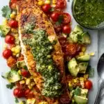 If you’re on the hunt for a dish that tastes like summer on a plate, let me introduce you to my absolute favorite: Blackened Summer Salmon with Chimichurri. This recipe balances smoky, spicy salmon with a herby, punchy chimichurri and a bursting-with-flavor fresh corn and tomato salad—it’s a celebration of sun-drenched ingredients and simple techniques.
