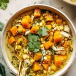 This Butternut Squash Green Chile Chicken Soup is a flavorful and hearty dish featuring tender chicken thighs simmered with sweet butternut squash, mild green chiles, and a blend of aromatic spices. Enhanced with fresh vegetables and lime juice, this comforting soup is perfect for a nutritious and warming meal.