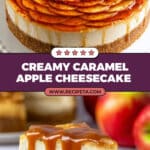 This Caramel Apple Cheesecake combines a buttery graham cracker crust with a luscious cream cheese filling enriched with cinnamon-spiced apples and homemade caramel sauce. Topped with beautifully arranged apple slices dusted with cinnamon sugar, this dessert is perfect for Thanksgiving or any special occasion.