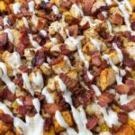 A hearty and flavorful Chicken Bacon Ranch Potato Skillet featuring tender seasoned chicken, crispy air-fried potatoes, savory bacon, and melted mozzarella cheese topped with creamy ranch dressing. This comforting dish combines the smoky flavors of bacon and the zing of ranch seasoning in a quick skillet meal perfect for weeknight dinners.