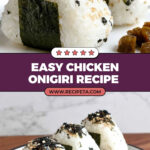 Chicken Onigiri is a delicious Japanese rice ball filled with flavorful marinated chicken glazed in a homemade teriyaki sauce. This recipe features sushi rice mixed with salt and furikake, tender chicken marinated with soy sauce and sake, and a sweet-savory teriyaki glaze. Wrapped with nori, these onigiri make a perfect snack or light meal combining savory chicken and seasoned rice in a handheld triangle shape.