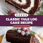 This classic Yule Log Cake (Bûche de Noël) features a light and fluffy chocolate sponge cake rolled with a luscious whipped cream filling and covered with a rich chocolate ganache. Perfect for holiday celebrations, the cake is decorated to resemble a festive log, combining elegant presentation with delicious flavors.