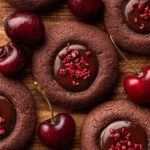 These Chocolate Cherry Cookies offer a delightful combination of rich cocoa-flavored cookies filled with luscious cherry-infused chocolate ganache. Soft, slightly fudgy cookies with a perfectly shaped indent to hold a smooth cherry ganache center make this treat a perfect dessert or snack for chocolate and cherry lovers alike.