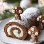 - Garnish and Serve: Before serving, sprinkle the cake roll with confectioners’ sugar and garnish with gingerbread cookies or your preferred holiday decorations. Use a sharp knife to slice into even portions. Store any leftovers covered in the refrigerator.