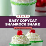 Enjoy the festive flavors of St. Patrick’s Day with this easy and creamy Copycat Shamrock Shake recipe made with vanilla ice cream, peppermint extract, and a vibrant green color. This refreshing milkshake is perfectly garnished with whipped cream, a cherry, and a fun sugar rim, making it a delightful treat to celebrate the holiday.
