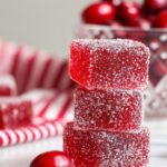 These Festive Cranberry Jelly Candies are a delightful homemade treat featuring a tart cranberry flavor set into sweet, chewy jelly squares coated with granulated sugar. Perfect for holiday gifting or festive snacking, these candies combine the natural vibrancy of cranberry juice with the satisfying texture of gelatin jelly, finished with a crunchy sugar coating that provides the perfect bite.