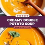 Creamy Double Potato Soup is a comforting, hearty, and silky smooth soup combining the earthy flavors of russet and sweet potatoes. Slow-cooked in a crockpot with carrots, onion, garlic, and vegetable stock, this vegan and gluten-free recipe is flavored with nutritional yeast and a touch of cayenne for warmth and depth.
