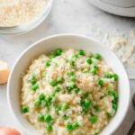 This easy and creamy Rice Cooker Risotto recipe uses a simple rice cooker to achieve perfectly tender Arborio rice infused with garlic, shallots, and lemon, making it a fuss-free alternative to traditional stovetop risotto. Enriched with butter, peas, and Parmesan cheese, it’s a comforting dish perfect for a quick weeknight meal or elegant side.
