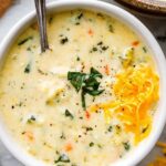 - Serve and garnish: Ladle the soup into bowls and garnish with shredded cheddar cheese, chopped green onions, and extra chopped parsley as desired. Serve warm.