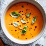 - Serve: Ladle the soup into individual bowls. Garnish with cracked black pepper, extra crushed red pepper flakes, and fresh basil leaves if desired. Serve with crusty bread or a Gooey Mozzarella Grilled Cheese Sandwich for a perfect comforting meal. Enjoy!