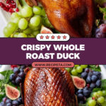 This Crispy Whole Roast Duck recipe delivers perfectly crispy skin and juicy, flavorful meat. The duck is seasoned, stuffed with aromatic fruits and herbs, and roasted in a methodical process that dries the skin thoroughly and bastes it with a sweet and tangy glaze. Ideal for special occasions, this recipe balances savory, sweet, and herbal notes for a show-stopping centerpiece.