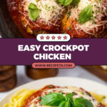 This Crockpot Chicken Parmesan recipe offers a deliciously easy twist on the classic Italian favorite by combining crispy chicken breasts with rich tomato sauce and melted mozzarella, all slow-cooked to tender perfection. Served over spaghetti and garnished with fresh herbs, it’s a comforting one-pot meal perfect for busy weeknights.