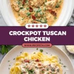 This Crockpot Tuscan Chicken features tender, juicy boneless skinless chicken breasts slow cooked in a rich and creamy sauce with sun-dried tomatoes, garlic, spinach, and Parmesan cheese. It’s an easy, flavorful dish that requires minimal prep time and makes a perfect dinner served over pasta or your favorite side.