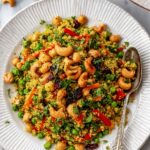 This Vibrant Curry Cashew Chickpea Quinoa Salad is a colorful and flavorful dish packed with protein-rich quinoa, chickpeas, and a blend of fresh vegetables. Infused with warm curry spices and topped with sweet and spicy maple cayenne toasted cashews, this salad is perfect as a nutritious main meal or a hearty side. The combination of textures and vibrant flavors makes it a refreshing and satisfying option for a healthy diet.