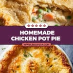This classic Chicken Pot Pie features tender cubed chicken and a medley of vegetables enveloped in a creamy, flavorful sauce, all baked inside a flaky, golden pie crust. A comforting and hearty homemade meal perfect for any occasion.