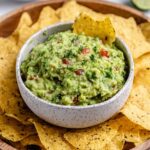This simple guacamole recipe is a fresh, creamy, and flavorful avocado dip made with ripe avocados, red onion, jalapeno, Roma tomatoes, cilantro, salt, and fresh lime juice. Perfect as a party appetizer, snack, or accompaniment to Mexican dishes, this guacamole is easy to prepare and can be customized to suit your taste preferences.