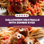 - Assemble and Serve: Place one zombie eye on top of each cooked meatball. Serve the spooky meatballs hot over the gluten-free spaghetti with tomato sauce. Enjoy your festive Halloween meal!