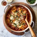 Breaking the noodles makes it easier to cook evenly in the skillet since you’re not layering like a traditional lasagna. Whole noodles can be tricky to fit and cook through properly without layering, but if you prefer, you can try folding them carefully, just expect longer cook times and possibly more stirring.