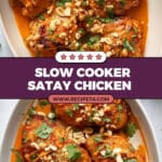 - This slow cooker satay chicken recipe is a simple twist on traditional Thai peanut chicken, perfect for busy days and meal prep.