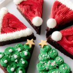 - Decorate Brownies: Use the green frosting to pipe Christmas tree shapes on some brownies, then adorn them with white pearl sprinkles and edible gold stars to mimic ornaments. For Santa Claus hat brownies, use both green and white frosting to create festive designs.