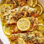 This Garlic Butter Oven Baked Tilapia recipe offers a flavorful and easy way to prepare tilapia fillets with a rich blend of spices, garlic butter, and fresh lemon. Baked to perfection in the oven, the fish is tender, flaky, and garnished with fresh parsley, lemon slices, and a hint of red pepper flakes for a delicious homemade seafood dinner.