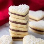 Heart Alfajores are delicate and tender heart-shaped sandwich cookies filled with creamy dulce de leche and coated with desiccated coconut. These Argentine-inspired treats combine a soft, buttery shortbread-like texture with a rich, sweet filling, perfect for special occasions or gifting.