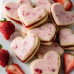 These Heart-Shaped Strawberry Shortbread Cookies are buttery, tender, and perfectly crumbly with a delicious strawberry jam filling and a smooth strawberry glaze. Ideal for special occasions or a sweet treat, these cookies combine classic shortbread with a fresh and fruity twist, shaped into charming hearts and sandwiched with luscious strawberry goodness.