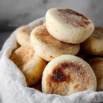 Homemade English Muffins made with a sourdough starter, offering a light, airy texture full of nooks and crannies. This recipe requires an overnight fermentation to develop flavor and can be cooked on a griddle or pan for a traditional taste and texture.