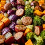This Sheet Pan Honey Garlic Kielbasa recipe is a flavorful and easy one-pan meal featuring savory pork kielbasa, tender sweet and small potatoes, and vibrant roasted broccoli all coated in a sweet and garlicky sauce. Perfect for a quick weeknight dinner with minimal cleanup, this dish balances hearty proteins and vegetables with a luscious honey garlic glaze.