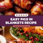 Delicious and easy-to-make Pigs in Blankets featuring smoky streaky bacon wrapped around cocktail sausages, baked until crispy and glazed with sweet honey for a perfect bite-sized appetizer or holiday treat.