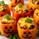 - Fun and Festive Presentation: Carving the jack o’lantern faces on the peppers makes this dish perfect for Halloween parties or cozy family dinners.