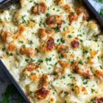 This Keto Chicken Alfredo Casserole is a creamy, low-carb dish featuring tender chicken cubes, steamed cauliflower, and a rich homemade keto Alfredo sauce topped with melted mozzarella cheese. Perfect for those on a ketogenic diet, this casserole combines comfort and nutrition with easy preparation and baking.