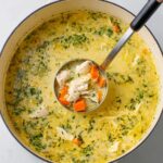 This Lemon Chicken Orzo Soup is a bright, comforting bowl of flavor combining tender chicken, delicate orzo pasta, fresh herbs, and the zesty brightness of lemon. The soup features a rich mirepoix base thickened with a buttery roux and finished with a touch of cream and fragrant dill for a nourishing and satisfying meal perfect for any season.