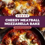 A hearty and comforting meatball and mozzarella pan bake combining tender beef and pork meatballs cooked in a rich, flavorful tomato sauce with melted mozzarella and creamy mascarpone topping, perfect served with crusty bread, pasta, or rice.