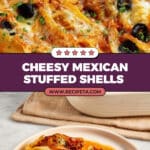 This Mexican Stuffed Shells recipe combines the bold flavors of ground chicken sausage seasoned with chili powder, cumin, and garlic with creamy cheeses and enchilada sauce, baked to perfection. Jumbo pasta shells are stuffed with a spicy, cheesy meat mixture, then baked in a salsa and enchilada sauce base, topped with melted cheddar and Monterey Jack cheeses for a deliciously cheesy dinner with a Mexican twist.