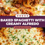 - Garnish and Serve: Remove from oven, sprinkle with fresh parsley, and serve hot for a rich, creamy, and cheesy spaghetti bake.