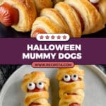 Mummy Dogs are a fun and festive snack perfect for Halloween or any playful occasion. These hot dogs are wrapped in crescent roll dough to resemble mummy bandages, baked until golden brown, and finished with cute candy eyes for a spooky touch.