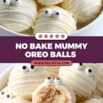 These Mummy Oreo Balls are a spooky and delicious Halloween treat made with a creamy Oreo cream cheese center coated in a hard vanilla candy melt shell. With just four simple ingredients, this no-bake dessert is easy to prepare and perfect for kids to help with. The candy eyes and drizzled chocolate add a fun mummy appearance, making them an irresistible festive snack.