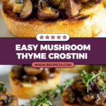 - Assemble Crostini: Spoon a couple of tablespoons of the mushroom mixture onto each crostini. Garnish with additional fresh thyme leaves and a light drizzle of olive oil before serving.