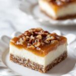 - Assemble the Topping: Pour the warm pecan pie topping over the baked cheesecake. Use a spatula to spread it into an even layer across the top.