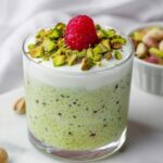 A creamy and nutritious Pistachio Overnight Oats recipe that combines the rich flavor of pistachio butter with quick oats, chia seeds, and non-dairy milk. This easy no-cook breakfast is prepped in minutes and chilled overnight for a convenient, healthy way to start your day. Topped with non-dairy yogurt, fresh raspberries, and crunchy chopped pistachios, it’s a delicious and satisfying vegan breakfast option.