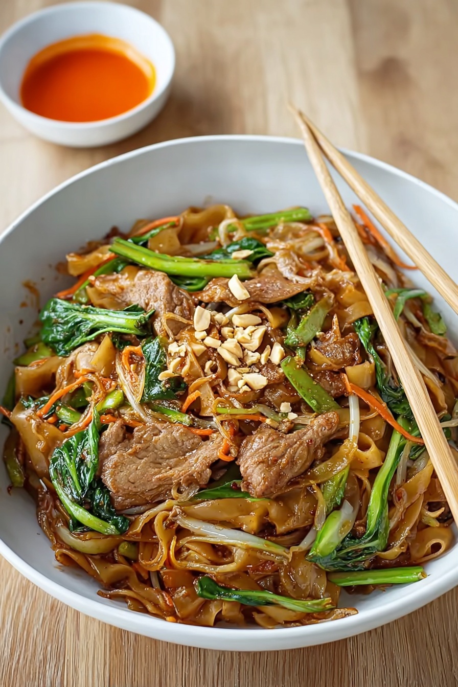 For special dinners, I like serving the noodles in individual banana leaf-lined bowls or small cast iron skillets to keep everything warm and let guests see the vibrant colors up close. Garnishing with whole Thai basil sprigs and extra peanuts makes it look restaurant-fancy but is super easy to do.