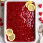 - Serve and Decorate: Before serving, spread the remaining raspberry jam over the top layer evenly. Decorate with fresh raspberries and lemon slices as desired. Slice into 12 portions and enjoy.