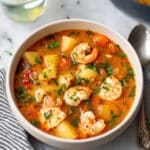 I’ve frozen this stew a couple of times, and it works well if you leave out the potatoes (they can get mushy). Freeze the broth and seafood separately if possible. When thawing, add freshly boiled potatoes to maintain the perfect texture once reheated.