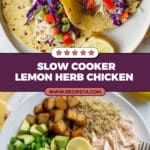 Once cooked, use two forks to shred the chicken right in the slow cooker. This way, it soaks up any remaining lemony herb juices. Taste and adjust salt or lemon juice, if needed, and you’re ready to roll. I love making a big batch for the week—it keeps well and makes weekday dinners so much easier!