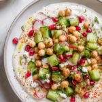 This refreshing Smashed Cucumber and Chickpea Salad is a vibrant, plant-based dish combining crisp cucumbers, hearty chickpeas, and zesty radishes, all tossed in a tangy chilli-lime tahini dressing. Complemented by a creamy coconut tahini sauce and vegan feta cheese, it’s perfect for a light lunch or appetizer served with crackers or bread.