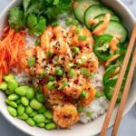 Spicy Shrimp Rice Bowls combine tender, succulent shrimp tossed in a flavorful, spicy sauce served over fluffy rice with fresh veggies like cucumber, jalapeño, shredded carrots, and steamed edamame. Topped with creamy spicy mayo, toasted sesame seeds, and green onions, this vibrant dish delivers a perfect balance of heat, sweetness, and freshness in an easy-to-make, satisfying bowl.