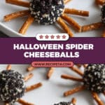 Spider Cheeseballs are a spooky and fun Halloween appetizer featuring creamy cheese balls coated in black sesame seeds and decorated with pretzel stick legs to resemble spiders. These bite-sized treats combine smooth cream cheese, tangy goat cheese, herbs, and spices, making them perfect for party platters and festive gatherings.
